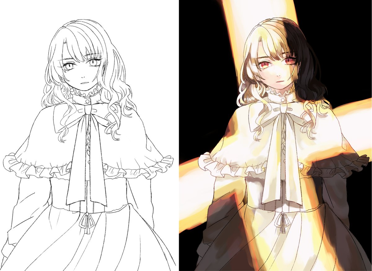 #皆さん線画と塗った後を見せてください 線画が苦手なので線画だけだとなんか…頑張ったな!って思いました