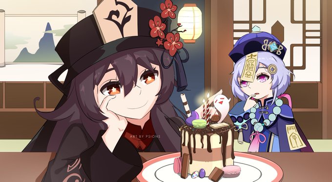 I made a birthday art on Hu Tao! :D #HuTao #Qiqi #hutaofanart #genshinimpactfanart #GenshinImpact #art
