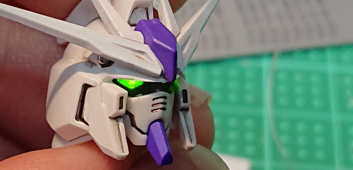 あおり、俯瞰の表情変化も目のライトアップで強調されますね! (HGハイニューフェイス) #ガンプラ