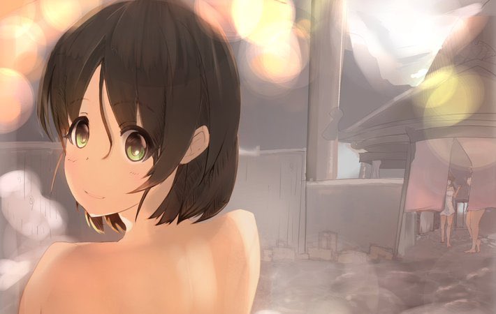 美世ちゃんと二人で露天風呂入ってたらWFDの二人にバレる奴描きました #原田美世