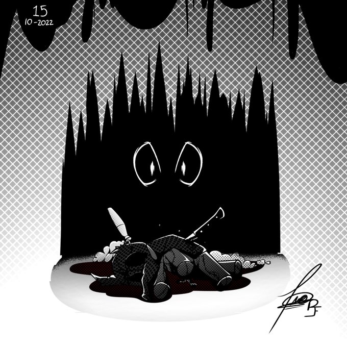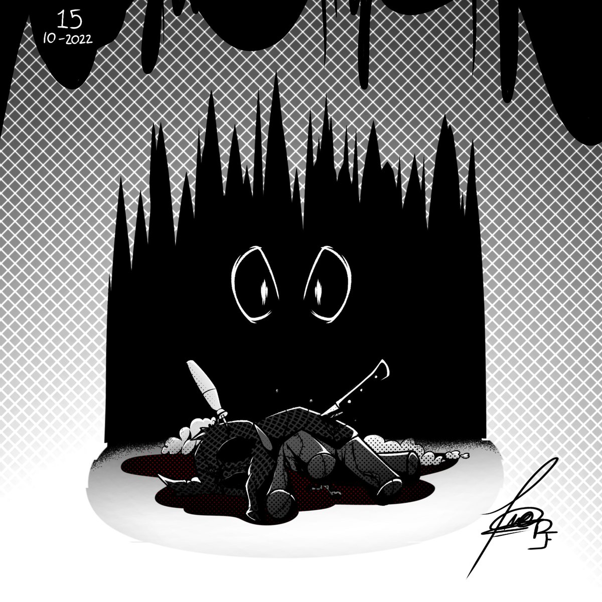 DAY 15 🦔 A voodoo doll, the tragedy that doesn't warn (ARMADILLO, yeah... I'm out of ideas with this one :v) #inktober2022 #digitalart #digitaldrawing #armadillo #HappyHalloween