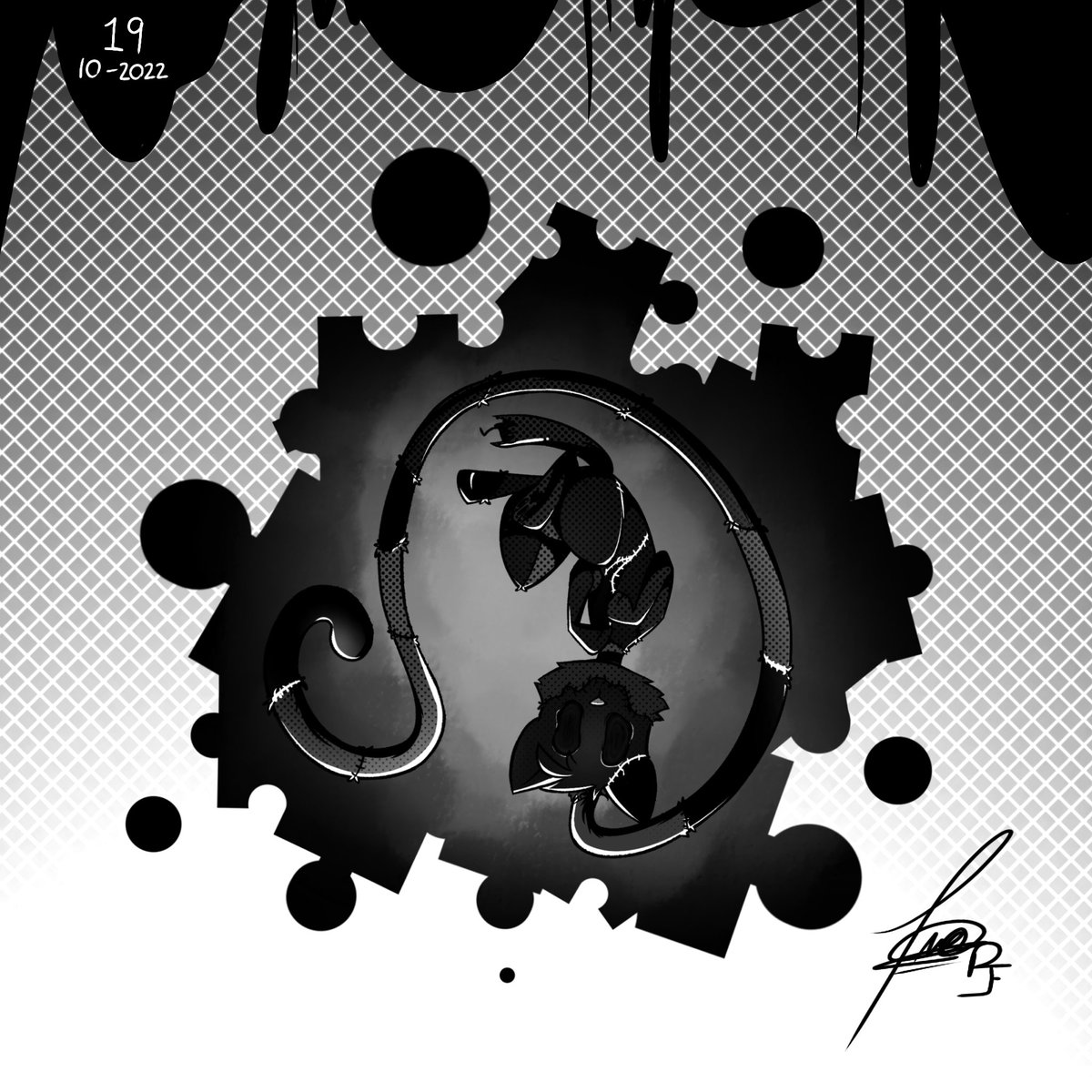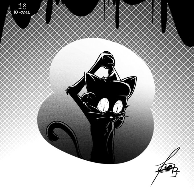 DAY 19 🌚 👁️ Let's play with the cat puzzle 👁️ Remove that horrific tail!!!, now it will be a ..... 💀 PONYTAIL 💀 #inktober2022 #digitalart #digitaldrawing #ponytail #cat #HappyHalloween