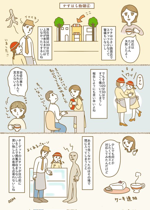 11 134 防犯カメラ後編です。 ホームセンターのときはアップで自分が映っていて、なんというか心は土砂降りでした。 今は貴重な経験ができたかなと思ってます。 #コミックエッセイ #漫画が読めるハッシュタグ #接客業 23/03/23 19:12