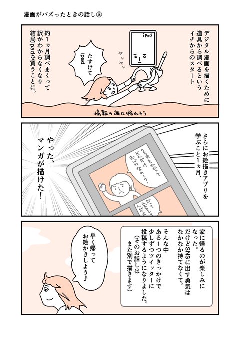 4 56 お疲れ様です。 漫画がバズったときの話③です。 なんとか漫画っぽいものが描けるまで2か月かかりました… 明日に続きます! ちなみに1コマめで助けてくれてるiPadはアップルペンシルを背負ってます。 #漫画が読めるハッシュタグ #コミックエッセイ 23/02/08 19:46