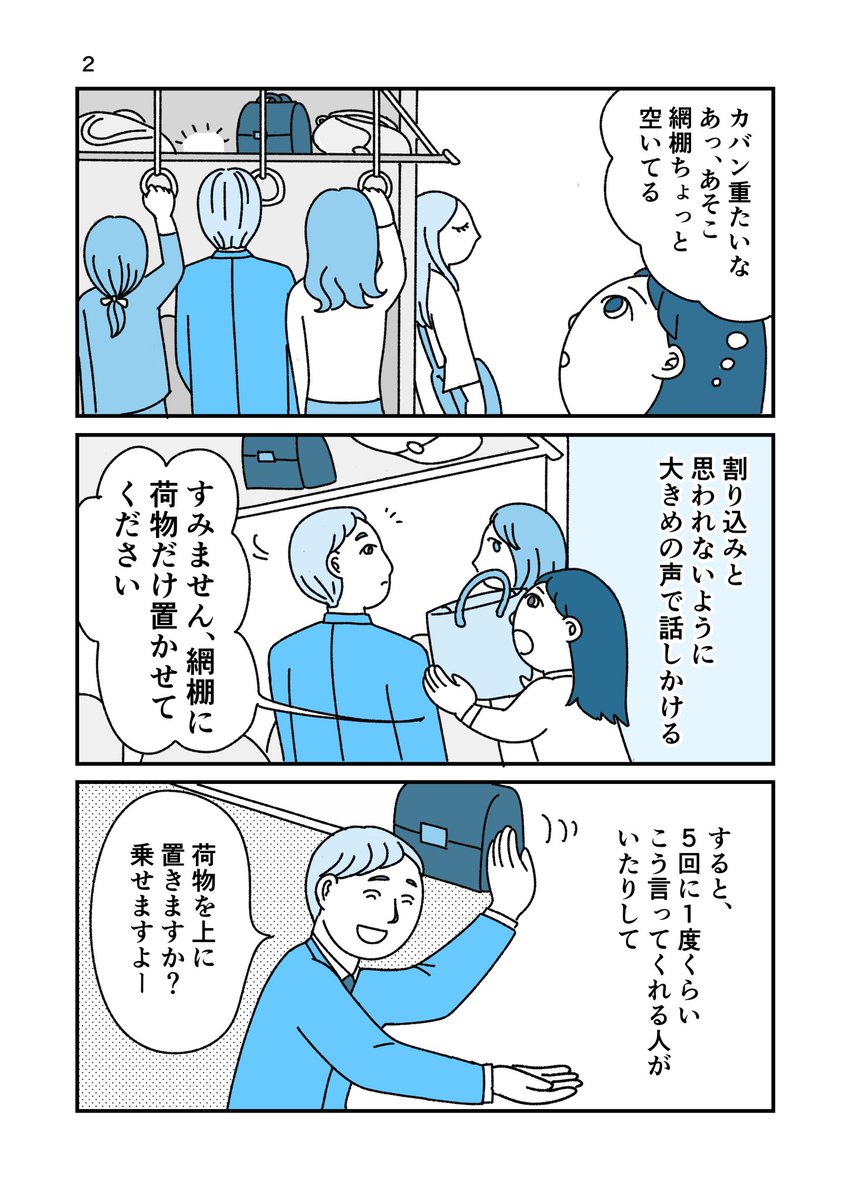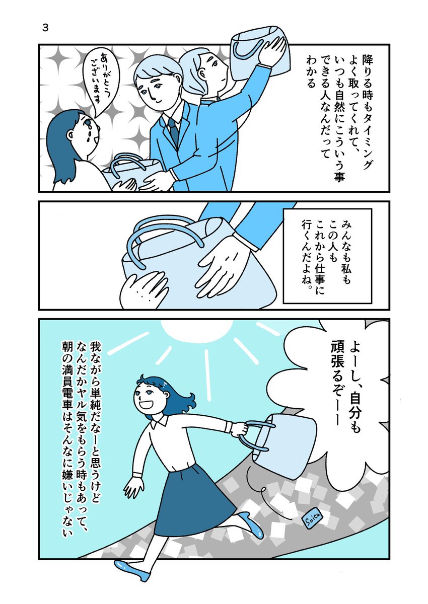 通勤電車の漫画です。 具合悪い時に助けてもらった事もあったので、朝の満員電車もそれほど嫌いじゃないんです。 #コミックエッセイ #漫画が読めるハッシュタグ #エッセイ漫画