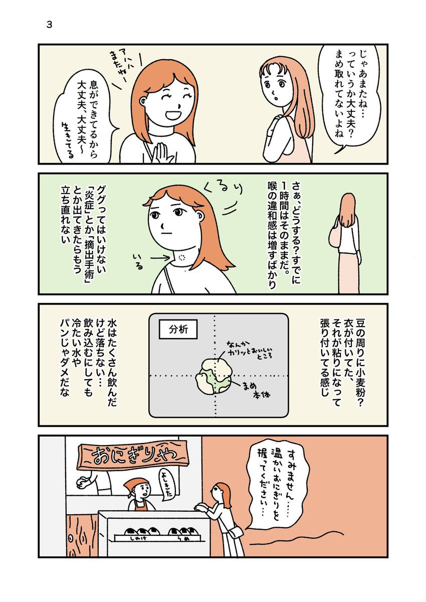 ごく最近の出来事です。もう内心ドキドキでした。 豆、ポリポリ食べれておいしいですよね。 #コミックエッセイ #漫画が読めるハッシュタグ #ピンチ
