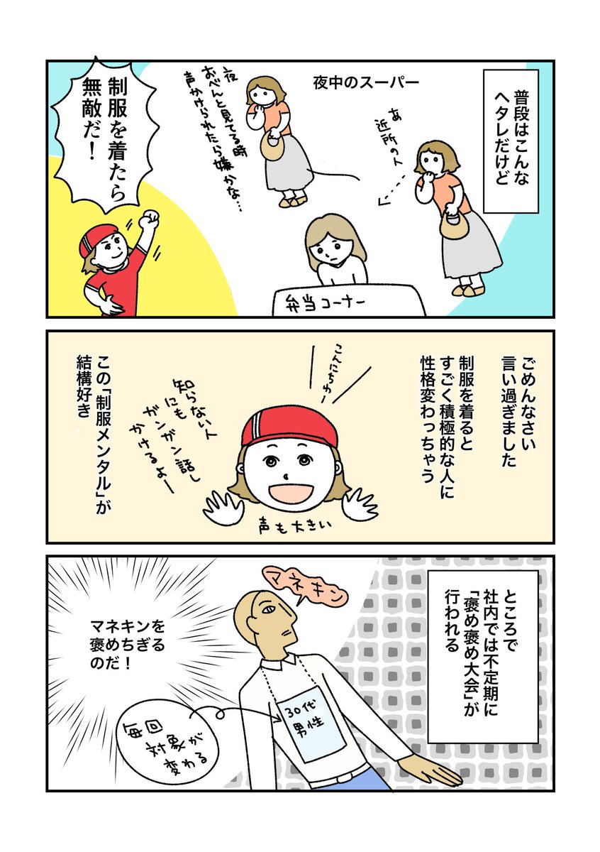 8 61 お疲れ様です〜! 制服効果(ドレス効果)ですかね。 あと髪型が上手くできた時とかも強気です。 しかしこの社内行事… #漫画が読めるハッシュタグ #コミックエッセイ #エッセイ漫画 23/06/07 19:43