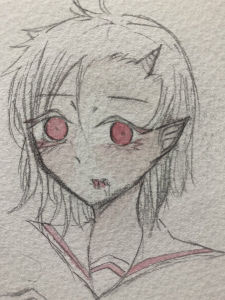 同じ線画で塗ってみました! 赤いのが今日で黒いのが去年の6月ですハイライトをおぼえた! #もなカフェ #成長してると思ったらRT #成長記録 #デジタルイラスト #イラスト練習中 #イラスト好きさんとつながりたい #中学生絵描きさんと繋がりたい #指描き