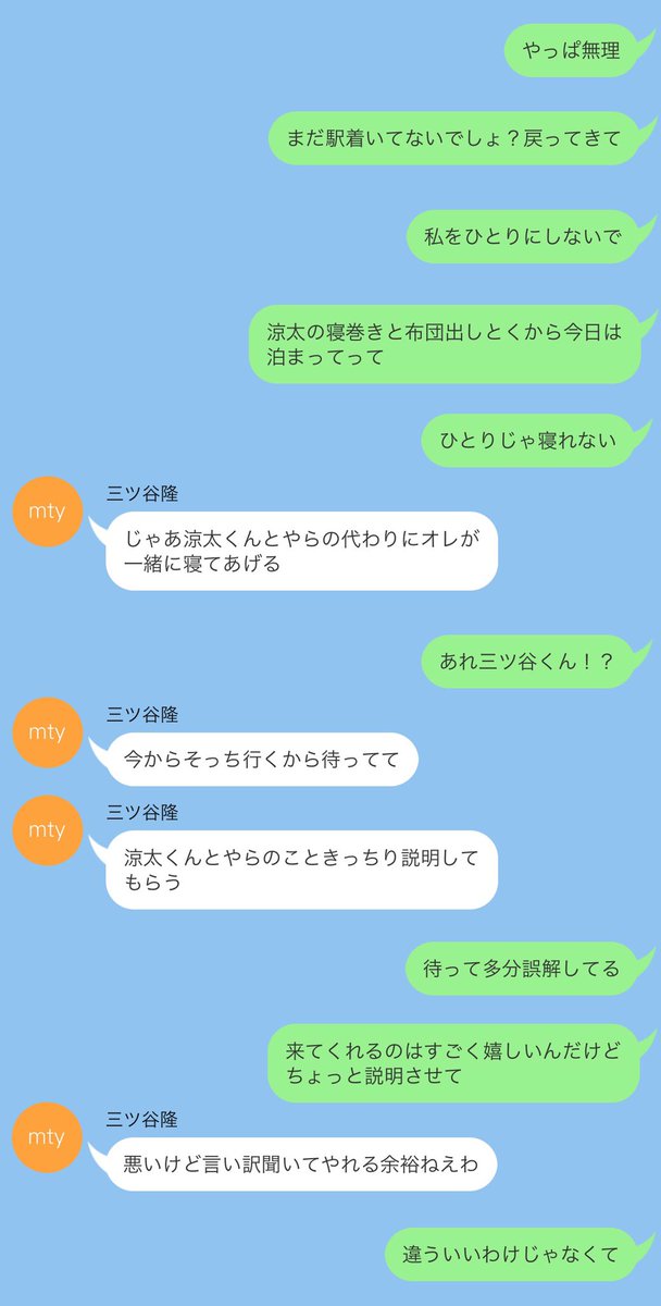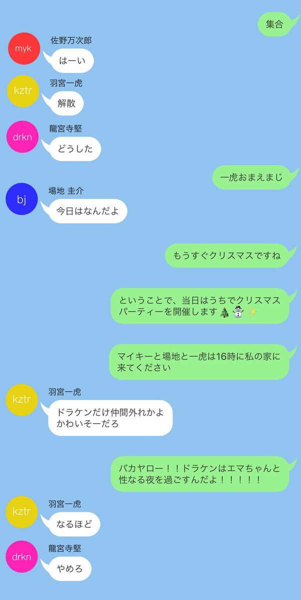 引RT世界線の続き。 夢主ちゃんが 🎄に身の危険を感じてmyk 、 bj 、 kztr をグループトークで再び緊急招集する話。drknはemちゃんという永遠の先約があるので話を聞いてもらうだけ。 * mty * mty夢だけどmtyは今回も出てきません。相変わらずヤバめのmty君です。dr×em要素有。 (4/11) #tkrvプラス twitter.com/pu_ka_pppp/sta…