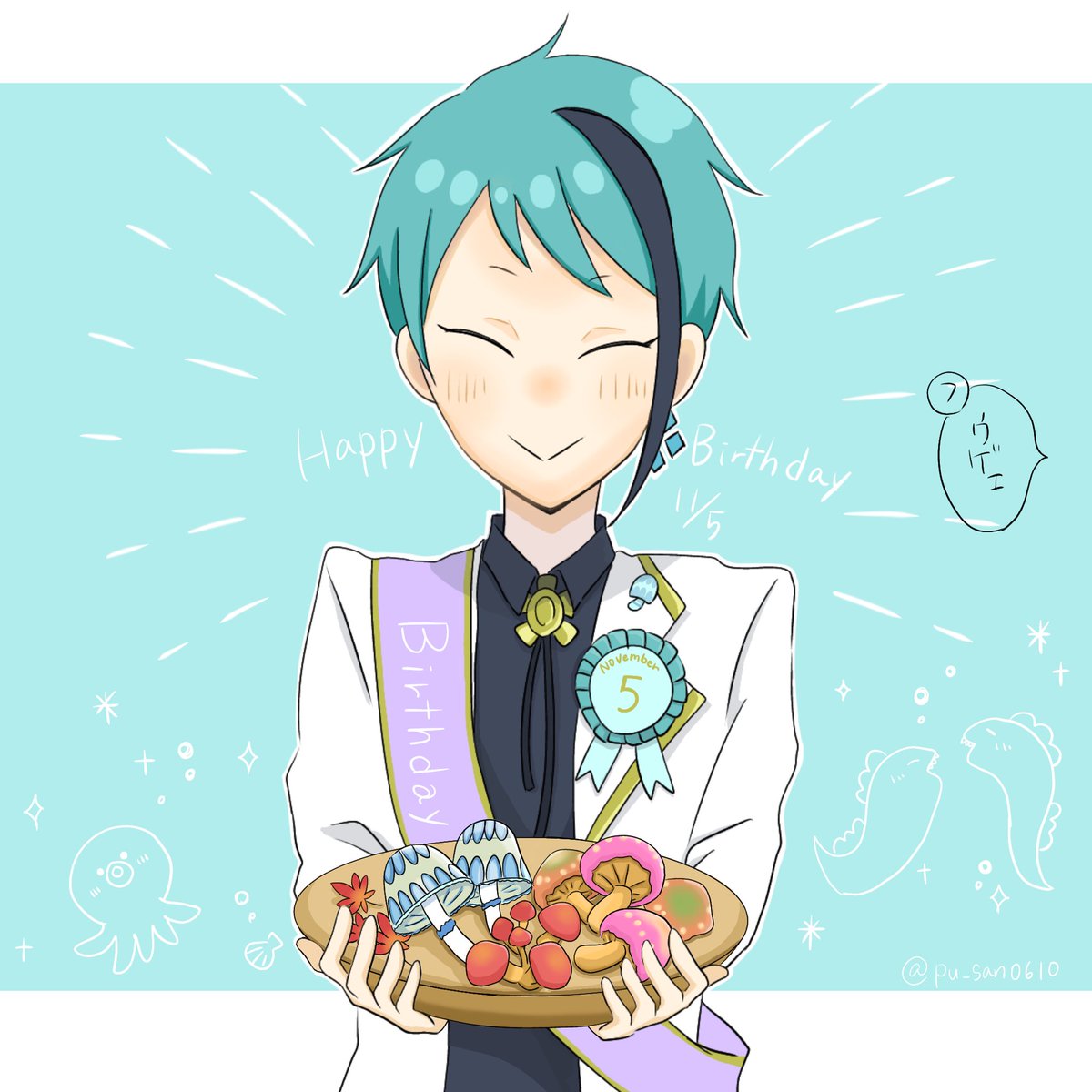 🐬🦈おめでとうございます! ジェくんは🍄あげれば喜んでくれるかな… #リーチ兄弟誕生祭2020 #ジェイド・リーチ誕生祭2020 #フロイド・リーチ誕生祭2020