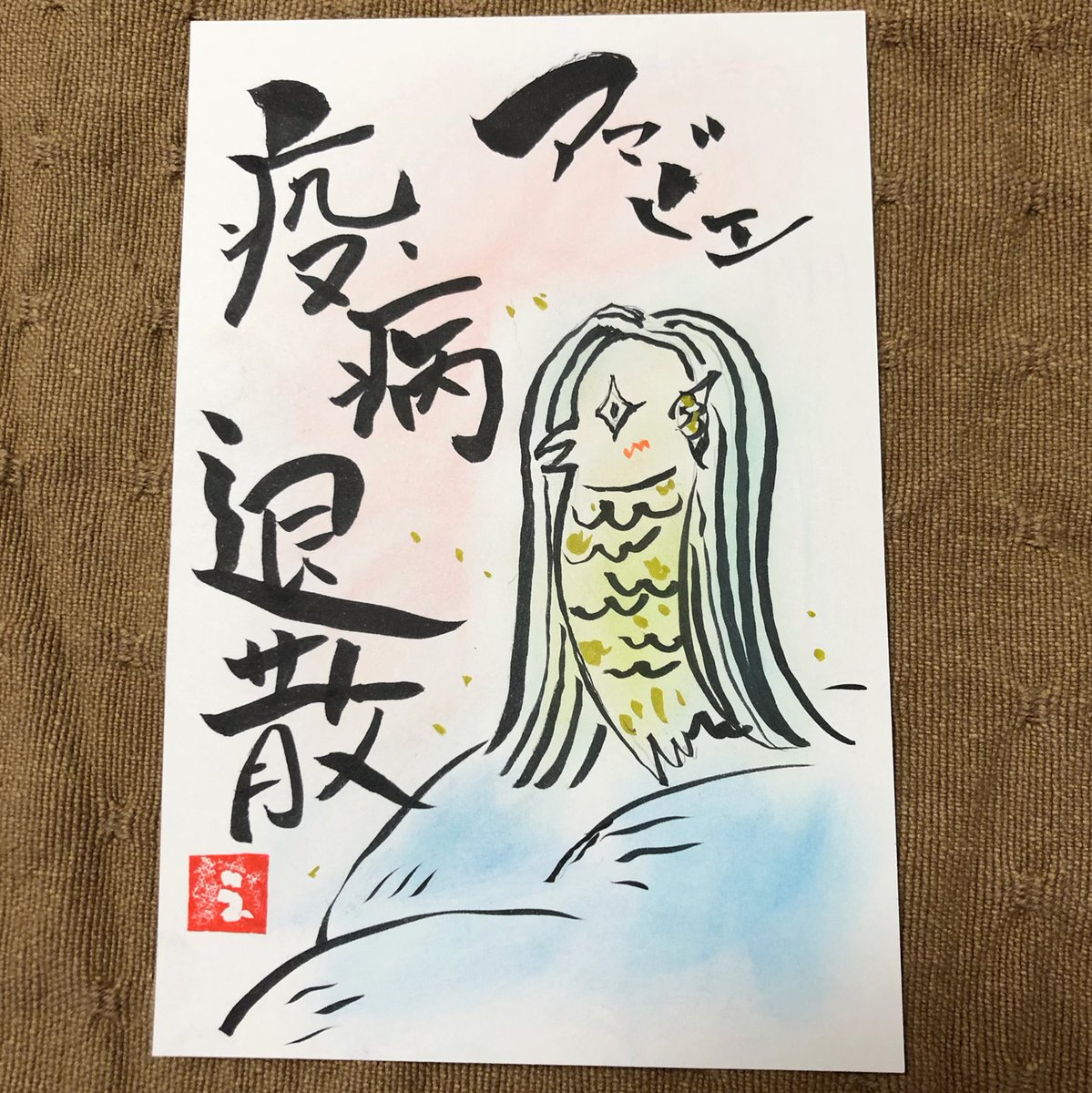 この方に新型コロナウイルスの終息をお願いする🙇♀️🙇♀️🙏 #アマビエチャレンジ #あまびえチャレンジ #筆文字アート #アマビエ様 #疫病退散祈願 #コロナに負けるな #疫病退散 #コロナに負けるなお絵描き大会2020