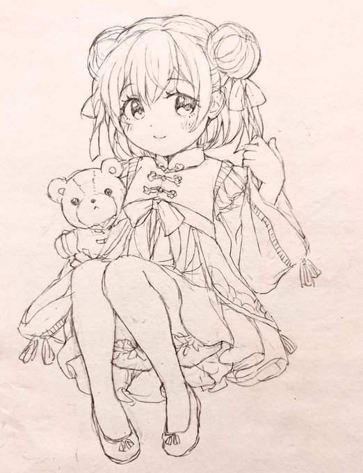 チャイナなべーるちゃんらくがき そのうち塗ります( ̄▽ ̄) #おべるかき