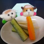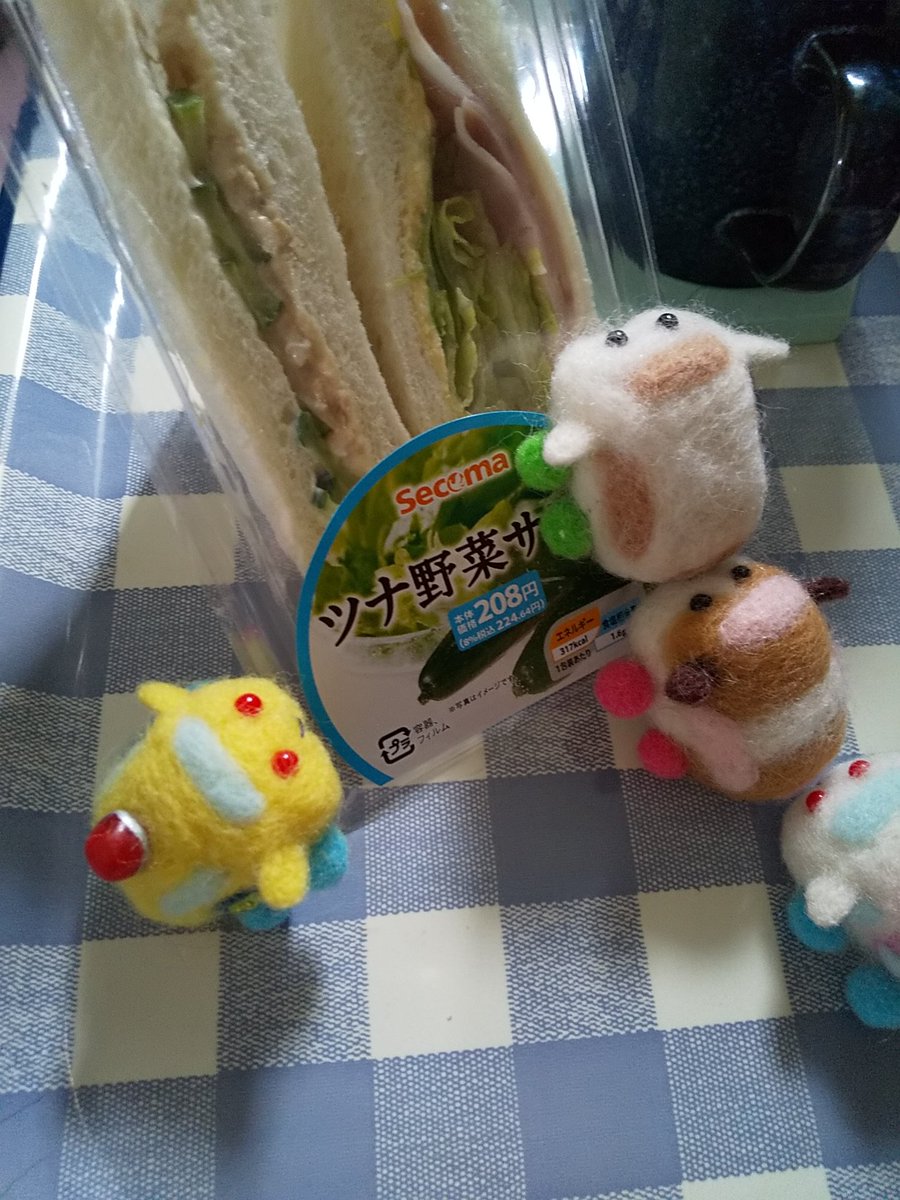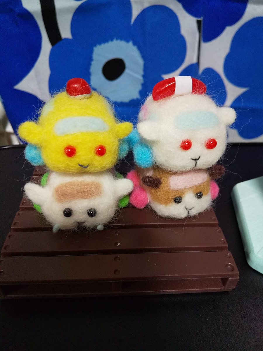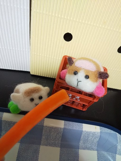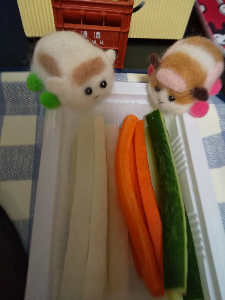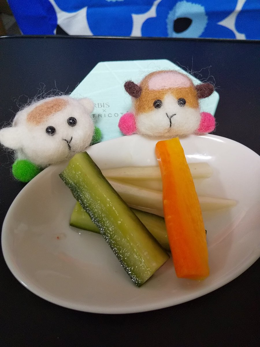 はい、ポテトの好きなにんじんだよ🥕 シロモは今日はレタスないからきゅうりでがまんしてね🥒 という遊びを昨日していた酔っぱらい。最近、野菜サラダみたら、モルカーたちに食べさせてあげたいと思う末期症状。 #モルカー #モルカーファンアート #モルカー作ってみた
