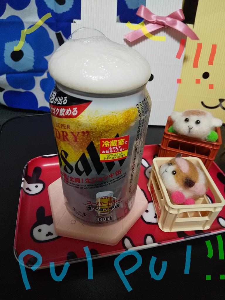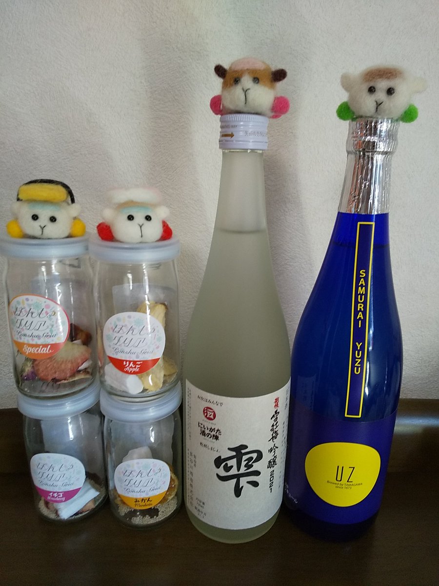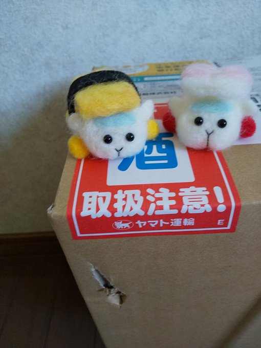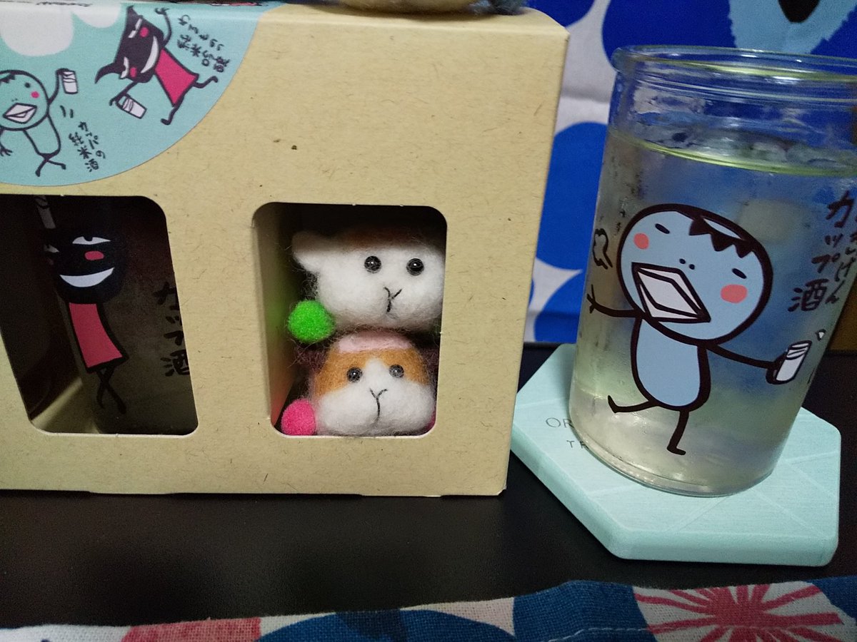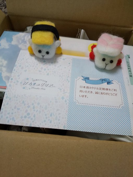 いつもはポテトとシロモがやるぽんしゅグリア開封式をおすしーずにやらせてみた。 ぽんしゅグリアにのれてうれしそうなおすしーず。 初めて日本酒じゃなくてリキュールもきた。ゆず🍊 #ぽんしゅグリア #モルカー #モルカーファンアート