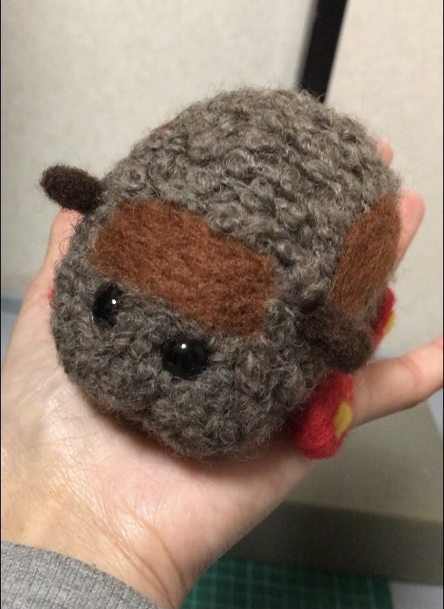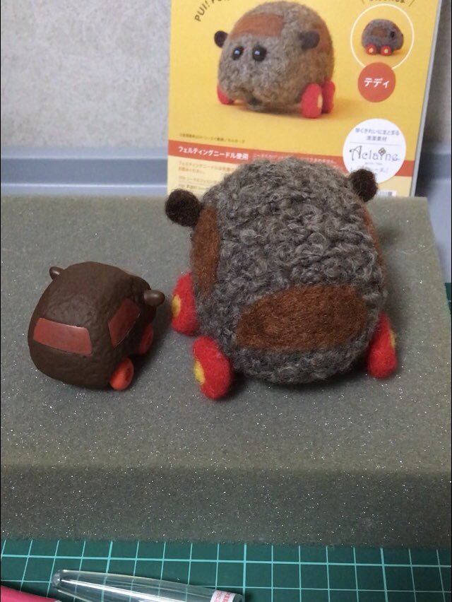 キットのテディちゃん完成👏! 絵を描くのとは違う達成感〜♪からの愛着愛着愛着...💓 前作った時もそうだったな!思い出した! 私の作ったテディちゃん女の子っぽい! (ん?え?女の子ですけど??って顔してる笑笑) #モルカー #モルカーファンアート
