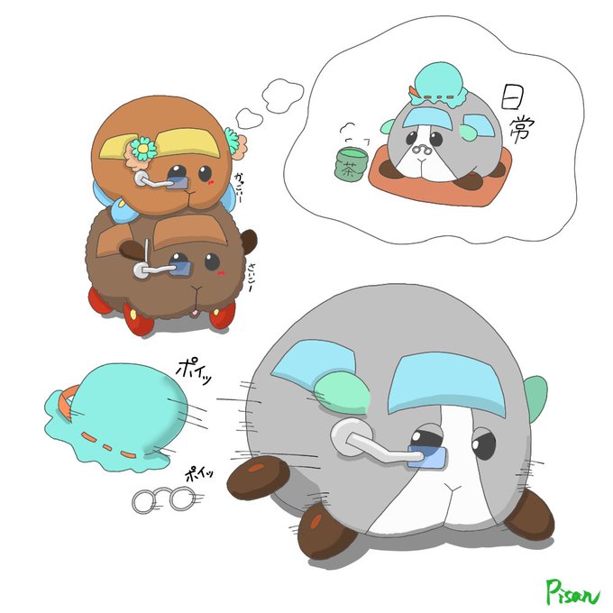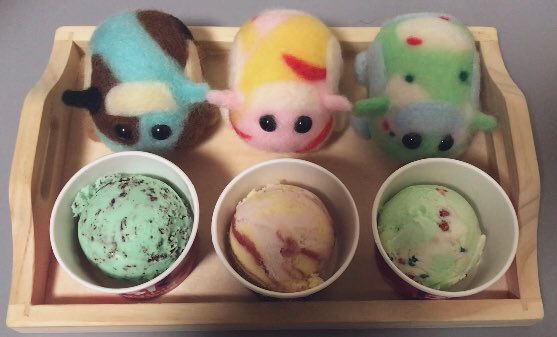 アイスな子たち! 新たにバナナアンドストロベリー意識の子が! これでモル尻アイスのトリプル...(手プルプル) これ以上は無理だなww 久々のサーティワンは沁みました。 心にも...歯にも...🥺💓 #モルカー #モルカーファンアート