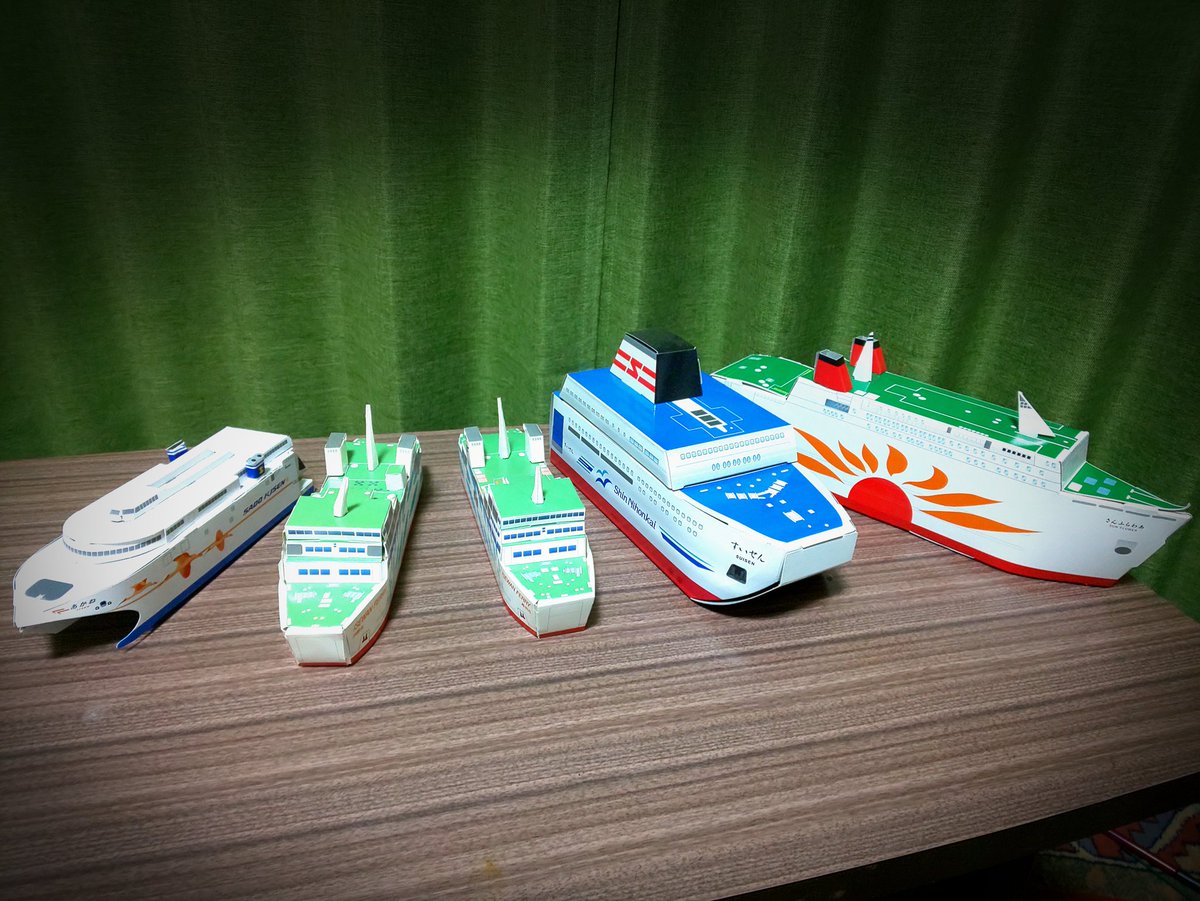 我が家の船たち。( ゚∋゚) #ペーパークラフト #KATO汽船はちょいムズ笑