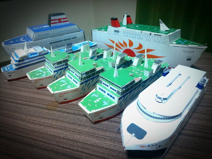 あかね も仲間入りして計5隻。( ´_ゝ`) #ペーパークラフト