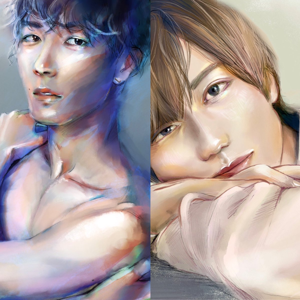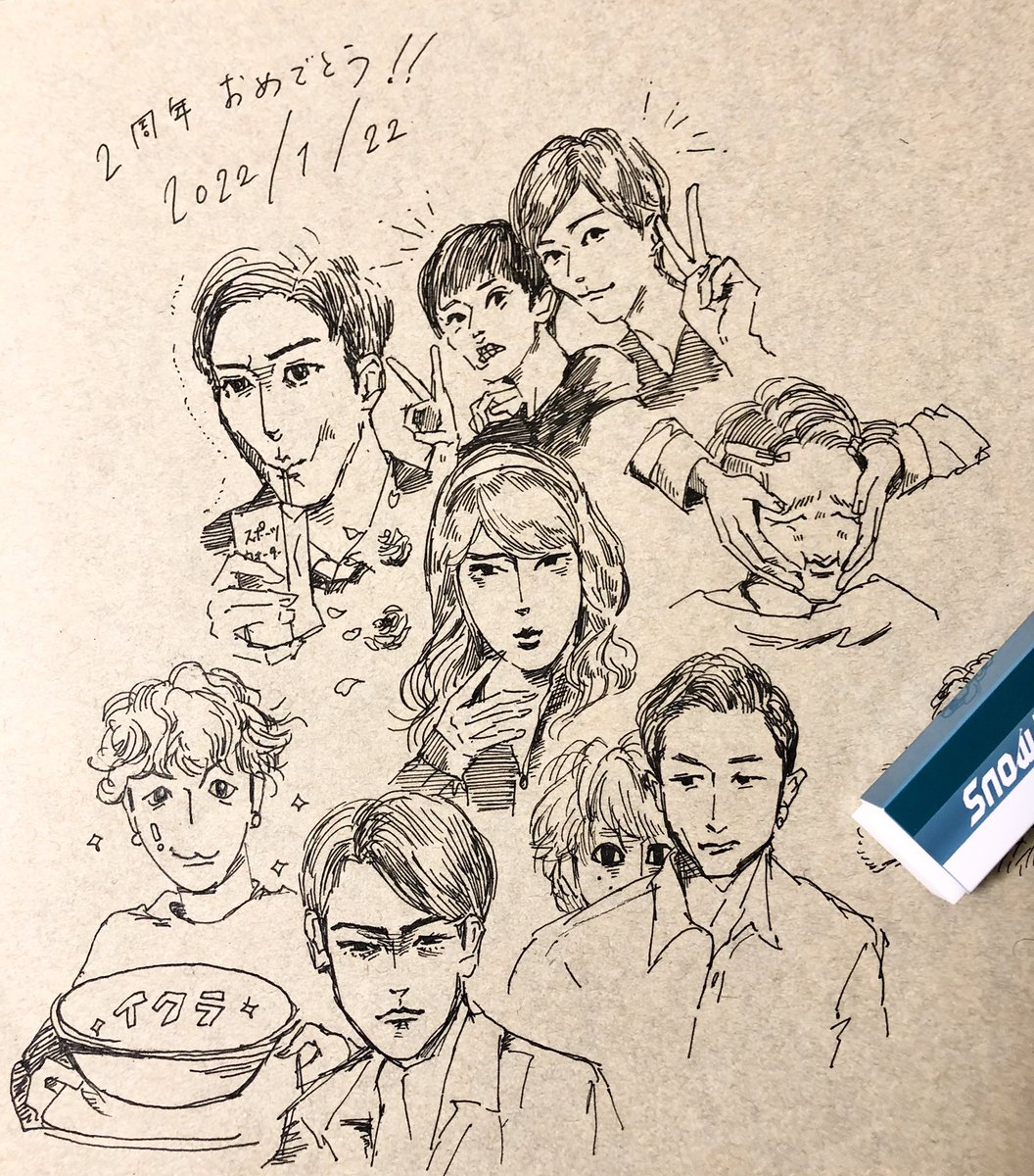 過去絵も一緒にお誕生日絵再放送🎂 描くたびに目が本当に綺麗でびっくりするし、すごいねすごいね〜ナイスなまつげだね〜と言いながら描く人です twitter.com/pukka_tan/stat…