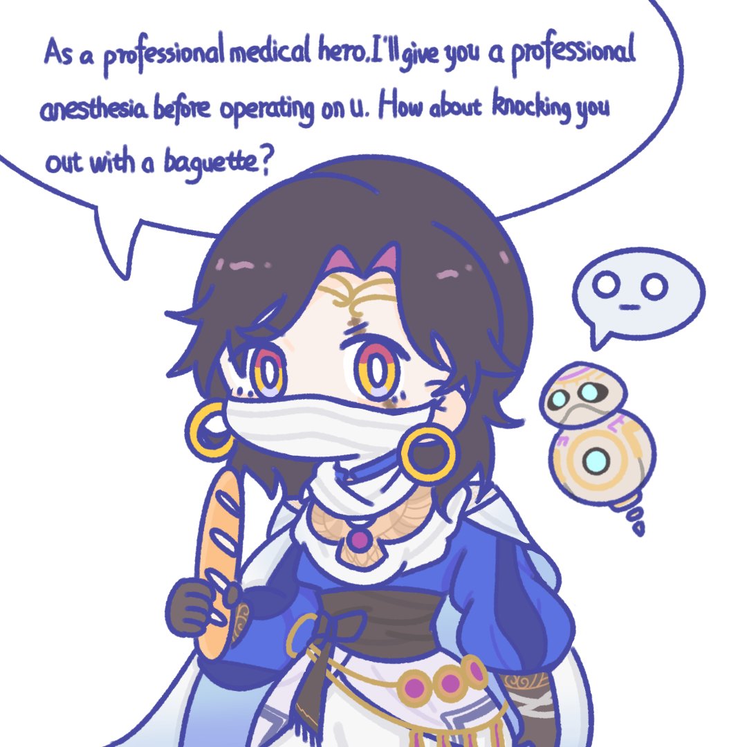#zalillust As a professional medical hero, I will give you a professional anesthesia before operating on you. How about knocking you out with a baguette?😉