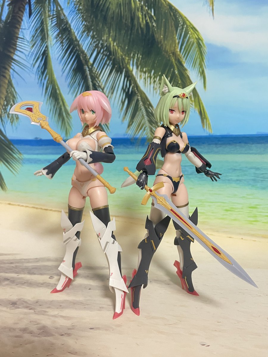 夏イメージのイラスト出来た(^_^)頭はメガミのエクソシストウィドウ 身体は創彩まどかをイメージしました^_^ #メガミデバイス #創彩少女庭園