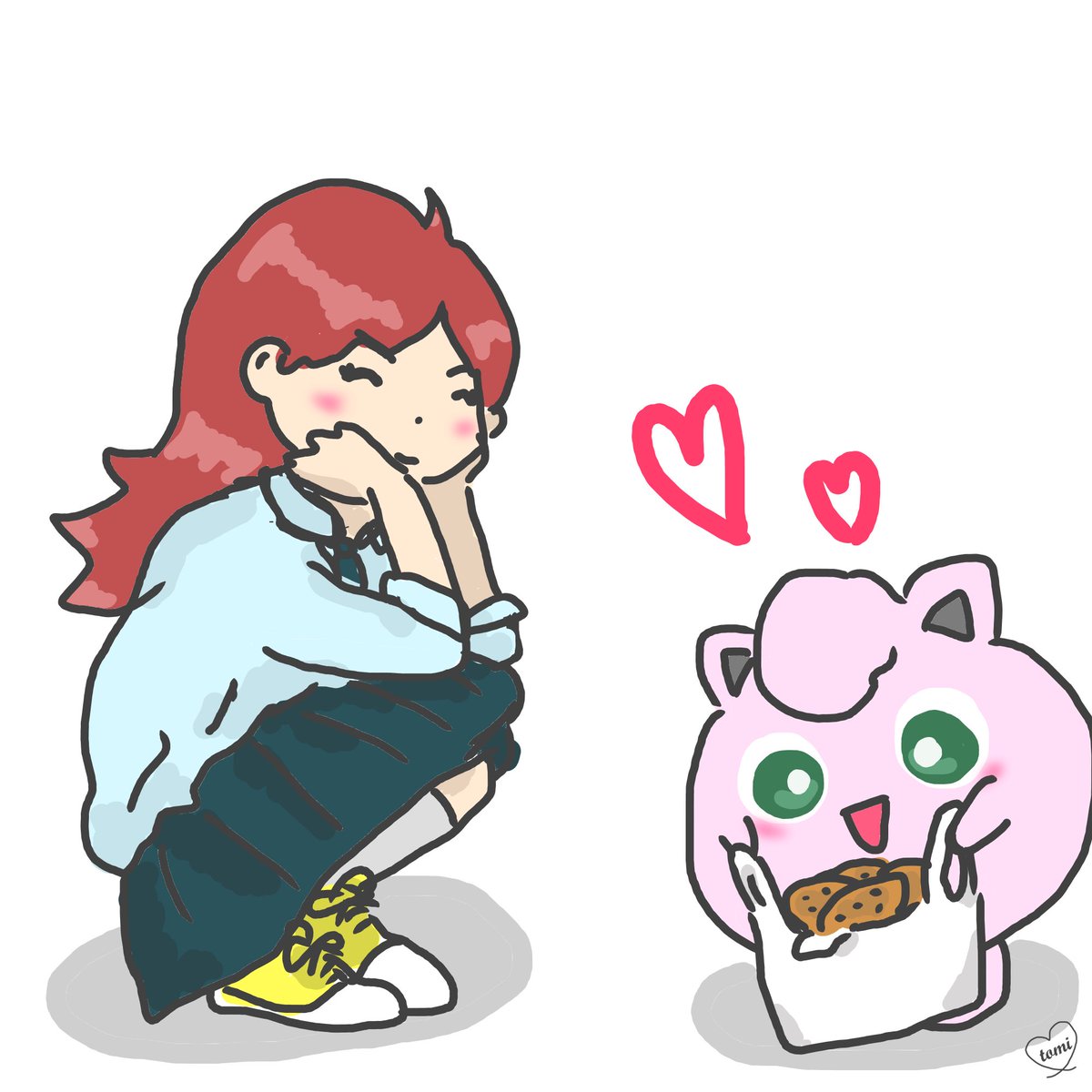 ミニスカのおねえさんから、ポフィンの差し入れを貰ったプリンちゃん #ポケモンイラスト #Jigglypuff