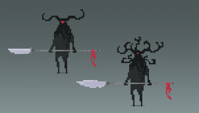 Monster with polearm type of weapon for #pixel_dailies I had a lot of fun creating them^^ #pixelart @Pixel_Dailies #digitalart