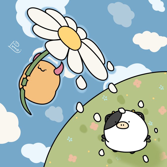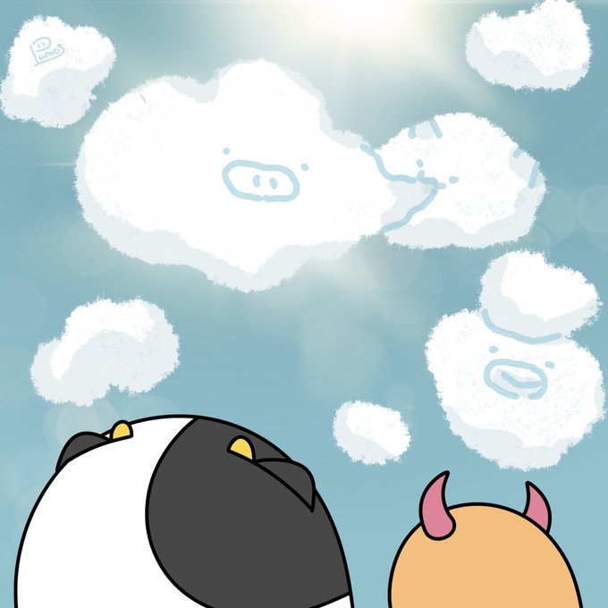 🐮「青空ぷもねー」 😈「…ぱ!」 #イラスト