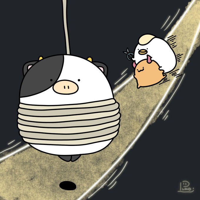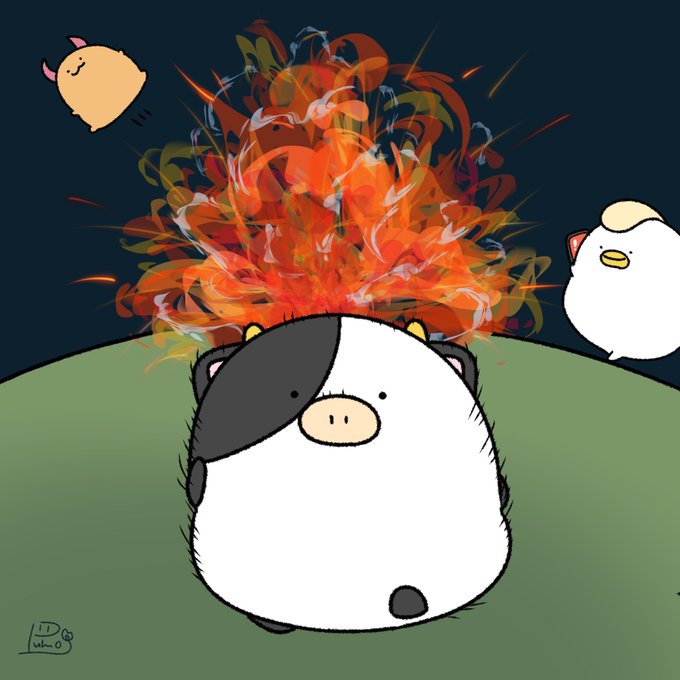 1 11 🐮炎!逃げろぷもーっ! 😈ワーッ 🥚(消防署に電話 #イラスト 23/03/28 01:18