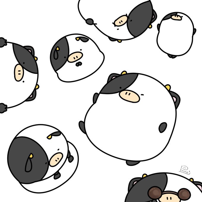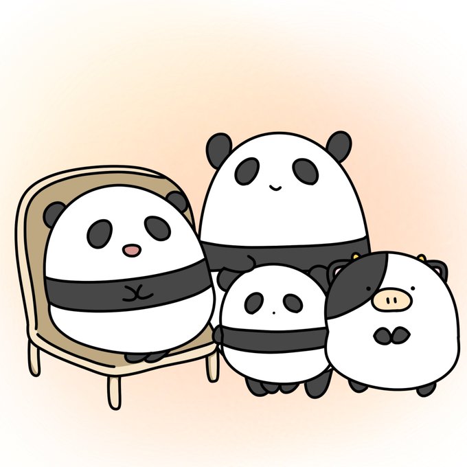 5 27 パンダの家族写真に紛れるうし #イラスト 23/03/31 10:53
