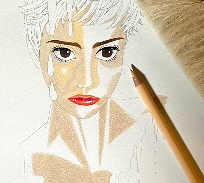 肌色は時間がかかりそうです。おやすみなさい🌝 #絵 #イラスト #オリジナルイラスト #色鉛筆 #アナログ画 #絵描きさんと繋がりたい #今月描いた絵を晒す #illust #drawing