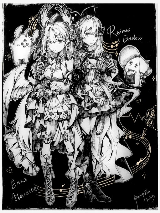 27 435 好喜欢enna和鬼鬼💗一周年快乐!(虽然有些迟了)希望你们可以喜欢🌸( Nina和Millie在画中sorry😭)#Reimural #Endoujin #エナーアート #Palouette 22/10/29 14:09