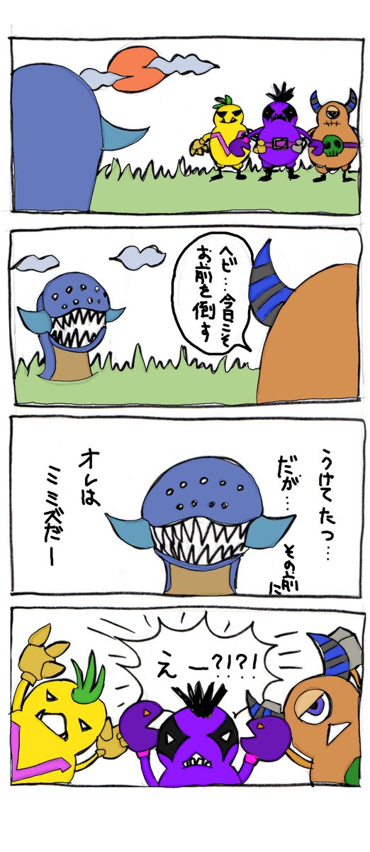 この生き物の正体は・・・ 是非遊びに来てみてください^0^/ ※ヘビを退治するゲームではありません #四コマ漫画 #イラスト #ゆるいイラスト #パンチマン #gameart #キャラクター #インディーゲーム #インディーゲームストリーマー求む twitter.com/punchManJP/sta…