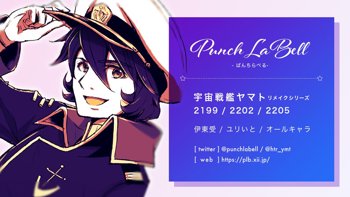 12/30(木) コミックマーケット99「東4 ム-10a」PunchLaBellにて参加します。 ヤマト2199,2202,2205とうたぷり本を頒布予定です。どうぞよろしくお願いします。 // コミケWebカタログにてサークル情報ページ公開中です! webcatalog.circle.ms/Circle/1570837… #C99WebCatalog