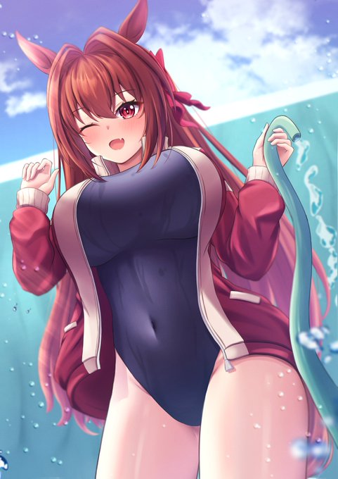 #ダイワスカーレット #ウマ娘 #イラスト プール掃除の時にはしゃいでいて欲しい願望