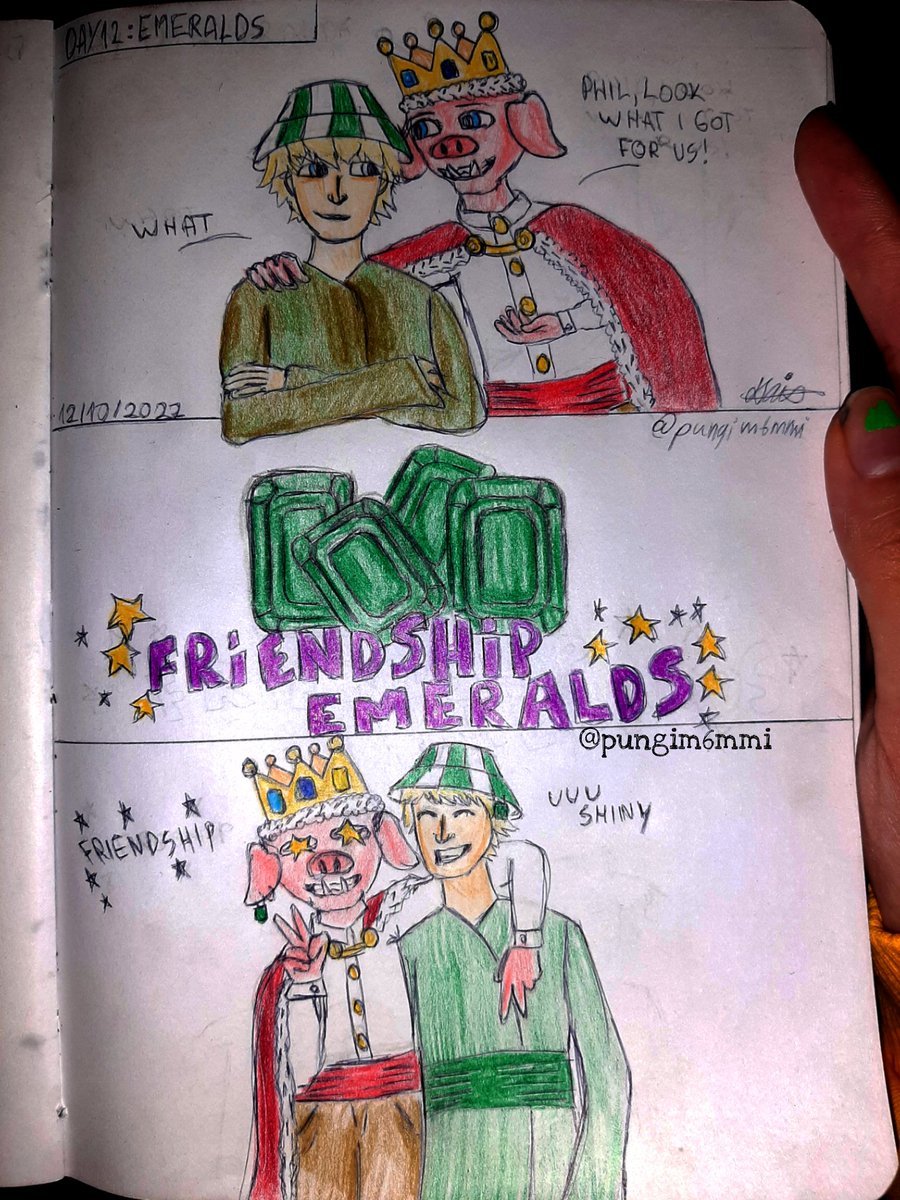 Day 12 of Technotober: Emeralds F R I E N D S H I P :) 🐷👑 #technotober #technofanart #technoblade #philzafanart