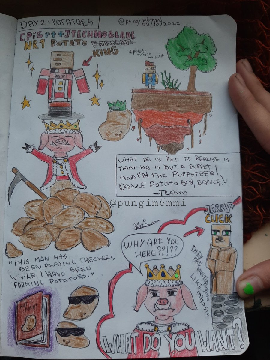 Day 2 of Technotober: Potatoes 🥔 🐷👑 "All men can see the tactics whereby I conquer, but what none can see is the strategy out of which victory is evolved - Sun Tzu, The Art of War" (Almost forgot to post got distracted) #technofanart #technotober #technoblade
