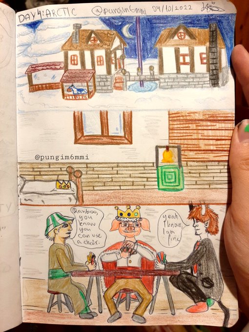 Day 4: Arctic (only went 23 mins overtime 🙄) They be playin' uno, Phil will win. #technotober #technofanart #technoblade