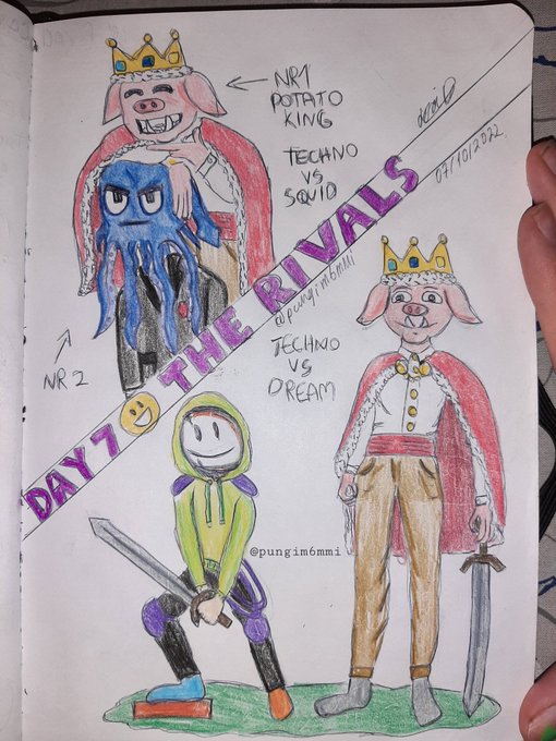 Day 7: Rivals (my favorite one so far aaa) Gotta draw the techno and squid potato rivaly and just techno and dream, ya know. 😎 #technotober #technofanart #technoblade 🐷👑