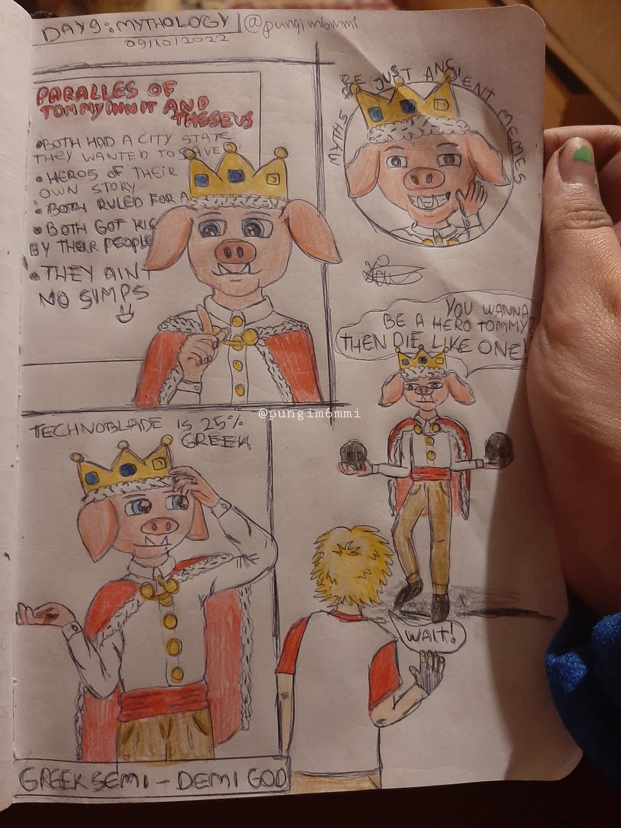 Day 9 of Technotober: Mythology Gotta love our nerdy greek semi-demi god :D 🐷👑 #technotober #technofanart #technoblade