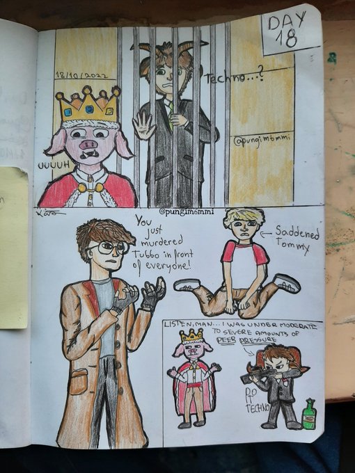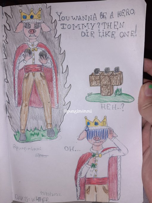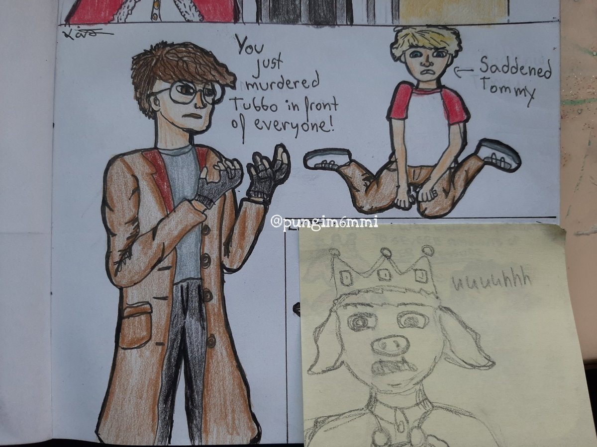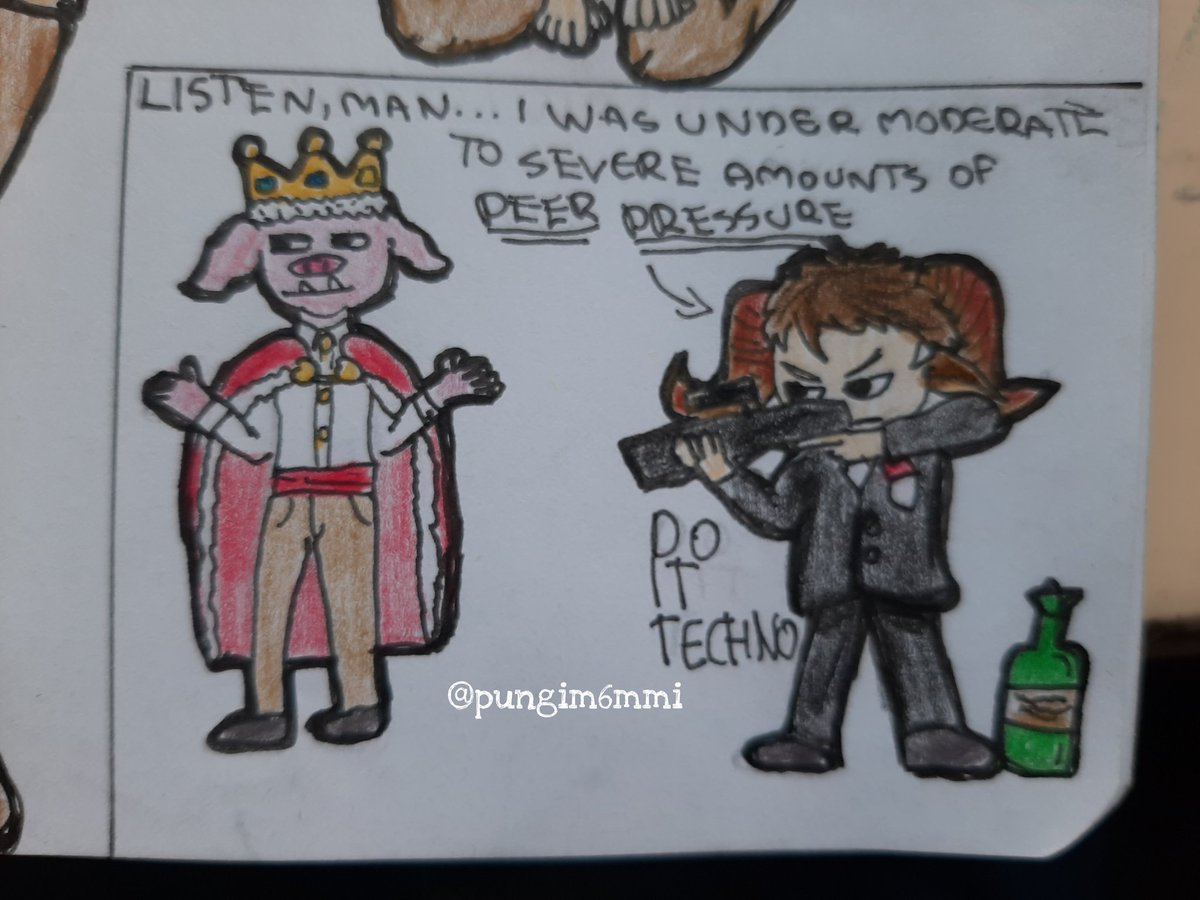 Day 18 of Technotober: Pressure Dude, he was P E E R P R E S S U R E D, obvs 🙄🐷👑 (bruh my pen died half way, the betrayal..) #technotober #technofanart #technoblade #wilburfanart #wilbursootfanart #tommyfanart #tommyinnitfanart #tubbofanart #schlatt 👍🏻