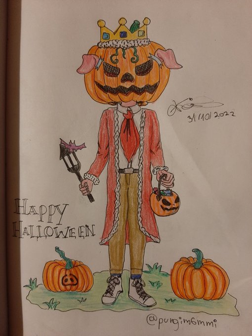 Bonus technotober drawing: HAPPY HALLOWEEN GUYS!! 🎃🐷👑 he is a pumpkin now 👍🏻 #technotober #technofanart #technoblade
