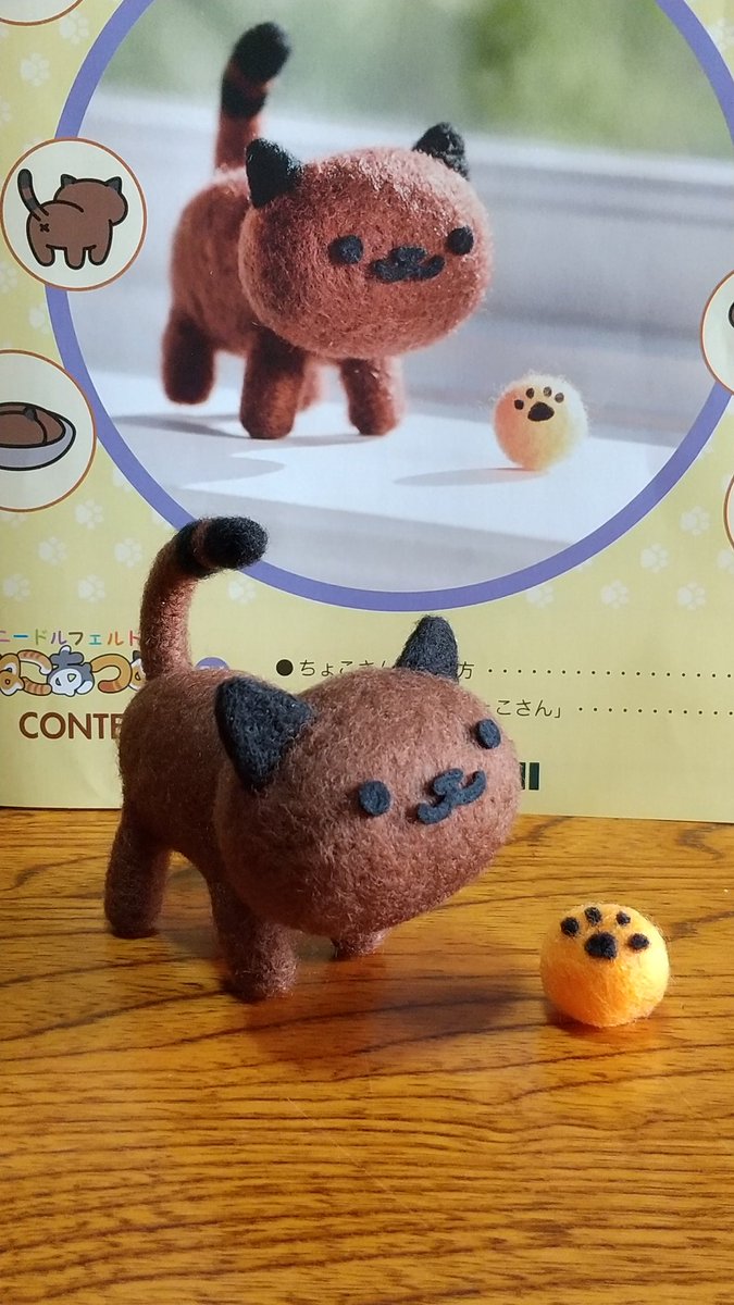 あそぼ♪あそぼ♪ そういえば、もう一匹楽しそうな顔のコがいましたね🤣 #羊毛フェルト