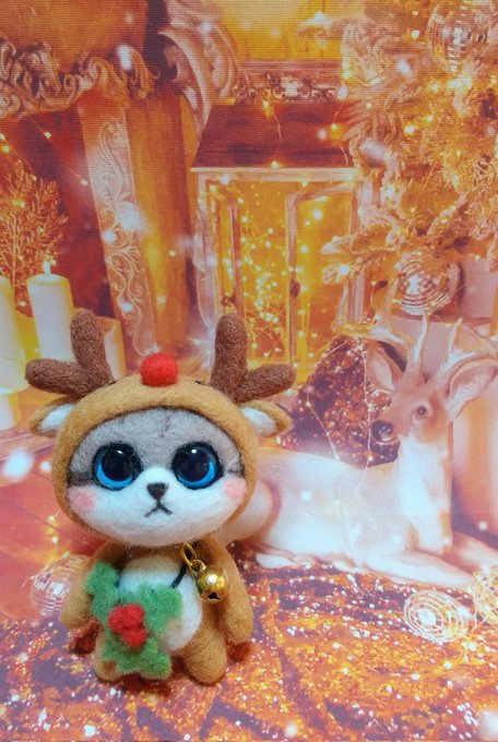 1 16 今夜はクリスマス🎄イブですね~ 家族で恋人で友人で 楽しい夜をお過ごしください🤗 大雪⛄️予報でもありますが😅 #羊毛フェルト 🦌猫さん2号 🦌&🎅さん風集合 22/12/24 10:43
