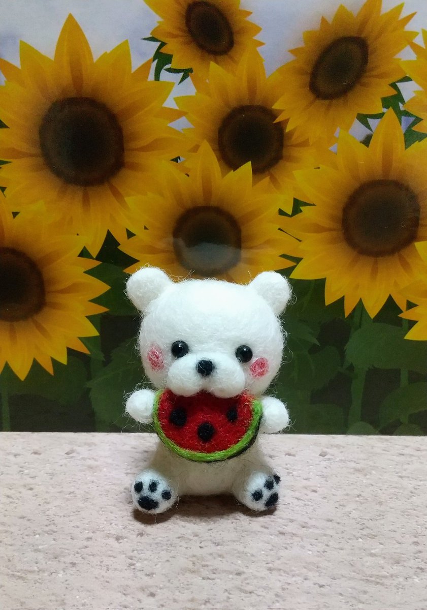 2 15 100均キット しろくま🐻❄️(スイカ)ちゃん完成~🙌 去年発売だったけどウチの近くでは見つからなくて、最近ようやく出会えました😄 スイカ🍉隊増員✨ #羊毛フェルト 23/06/22 16:53