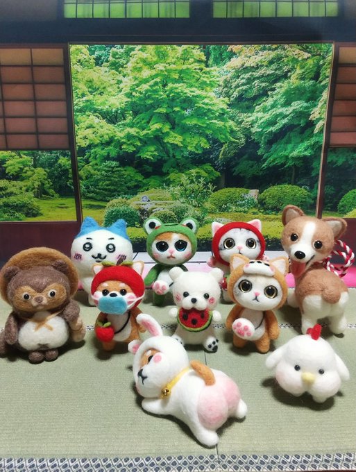 📷️アプリ通知 「思い出をふりかえりましょう」 🍓隊 当時加減が分からず、猫さんデカい🤣 🐹ちゃん、一番好きかもしれない おちっぽもカワユイ🥰 #羊毛フェルト
