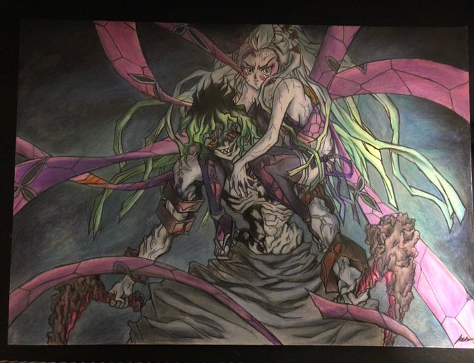 上弦の陸 堕姫&妓夫太郎 下絵からペン画 色鉛筆画まで B4サイズ 2ヶ月以上かかってしまったw💦 今回は油性色鉛筆ぼかし液 メルツを初使用です。 #鬼滅の刃 #鬼滅の刃遊郭編 #妓夫太郎 #堕姫 #色鉛筆画 #b4 #イラスト #絵師さんと繋がりたい #Illustration #punIllust #Instagram