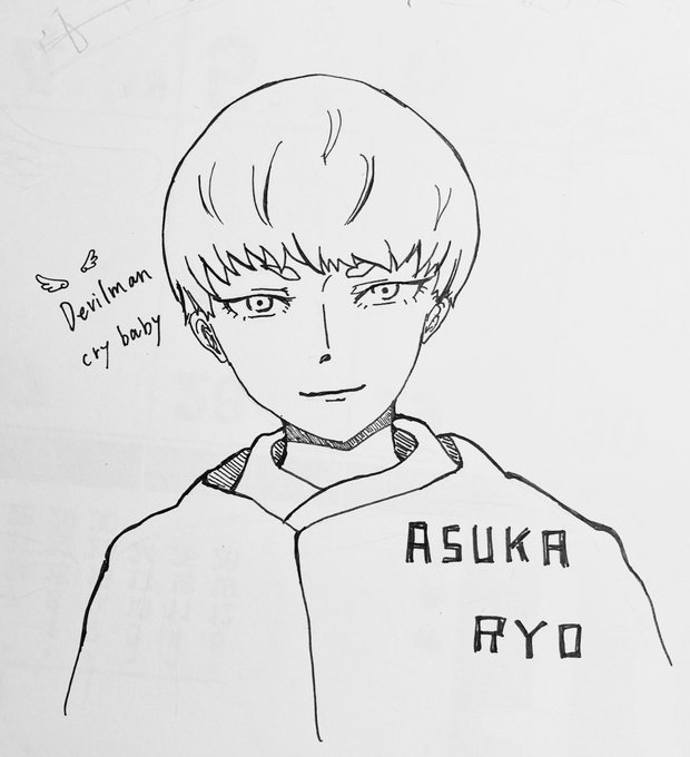 この前描いた飛鳥了のペン入れ もっとシュッとした顔が好きなんだけど、丸っこい顔になる癖がある。画風にはしたくないな #線画 #ペン画 #アナログ絵 #アナログイラスト #イラスト好きな人と繋がりたい #飛鳥了 #デビルマン #デビルマンcrybaby #DevilmanCrybaby