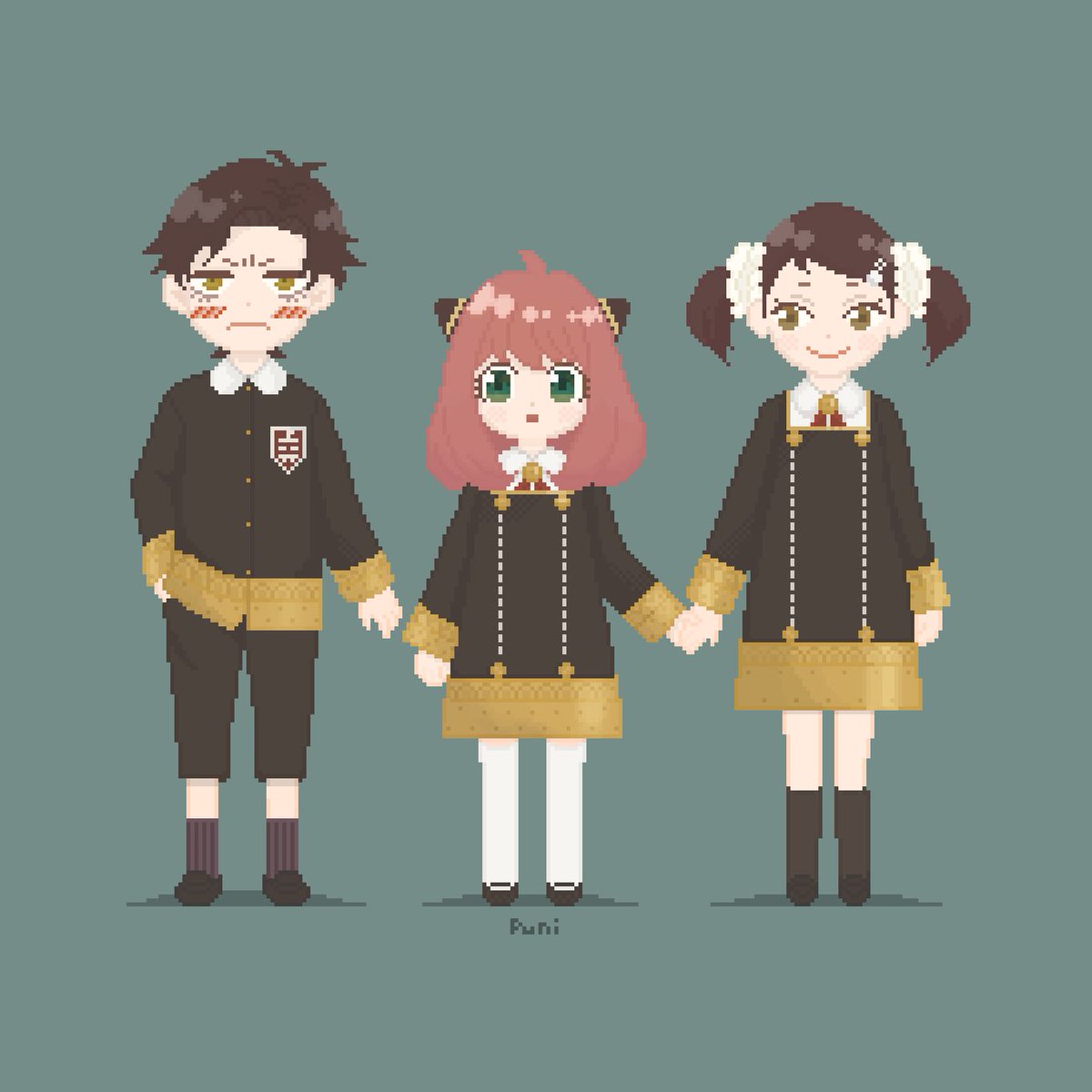 ❷ (これでぷらんびーだいせいこうまちがいない。アーニャ、せかいすくった) 「※#△&😊♨️❤️」 (アーニャちゃんなんて積極的なの) この3人かわゆ… #pixelart #ドット絵 #SPY_FAMIRY