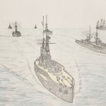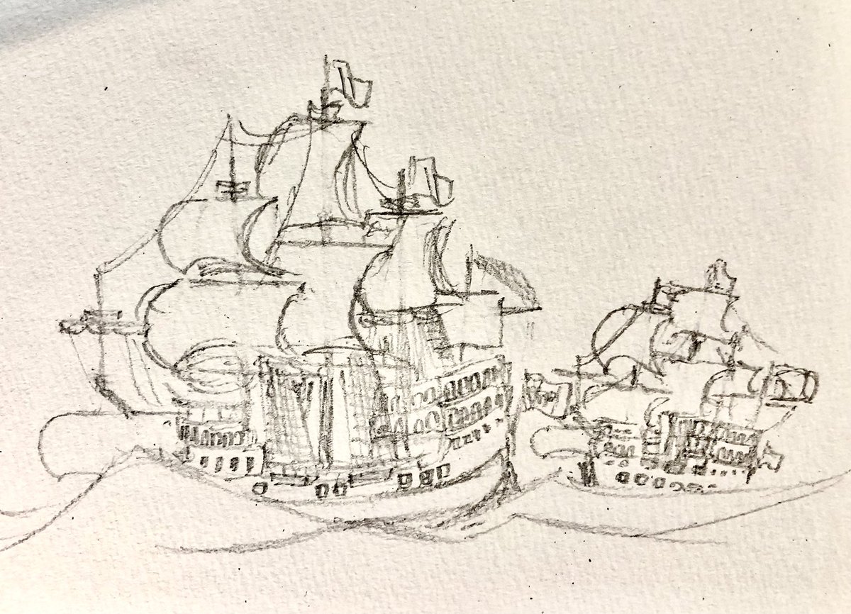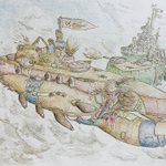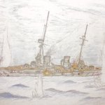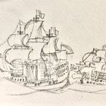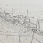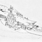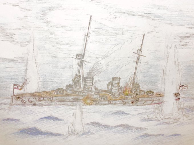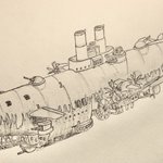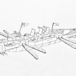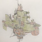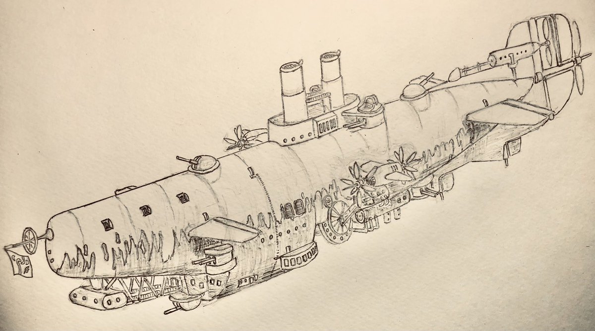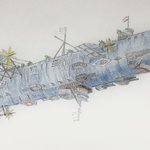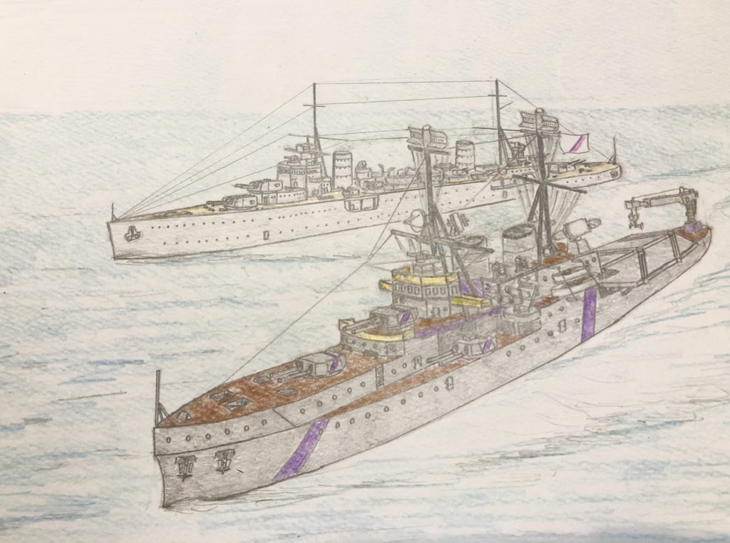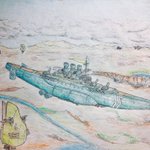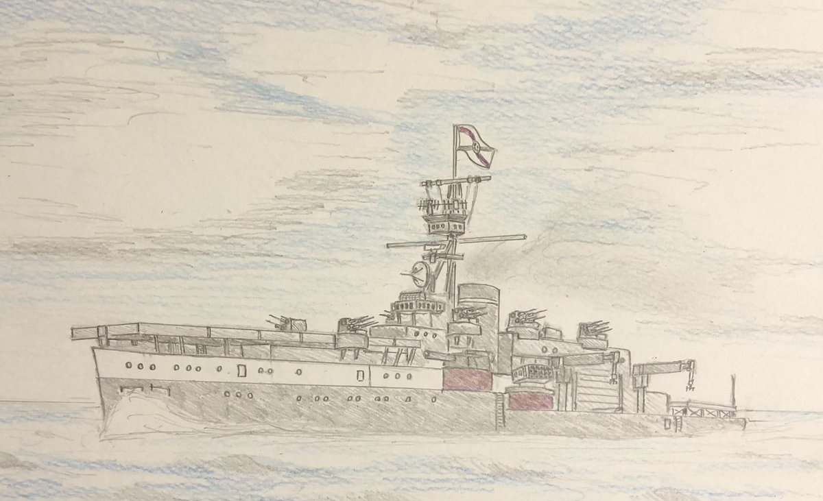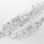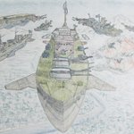 #今年もあと1ヶ月になりましたが画力がどうなったか見てみましょう 左 夏 戦艦ヒグラート (ラスティフロント作品) 右 冬 偵察巡空艦ターフィネイシュ (リプで作る架空艦作品) 画力よりも発想力が欲しいかな